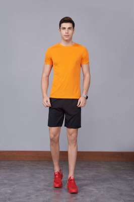 超彈力純色上衣 夏季男女裝T恤文化衫 橘色【圓領(lǐng)】