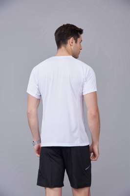 修身運動短袖 舒適透氣跑步訓練速干T恤-白色