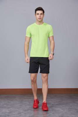 修身運動短袖 舒適透氣跑步訓練速干T恤-果綠色