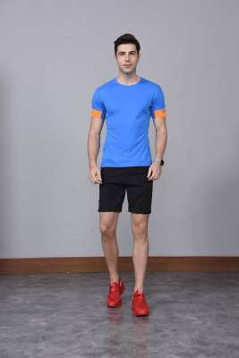 男裝新款情侶裝純色T恤 男上衣潮純棉圓領 短袖T恤 湖藍色