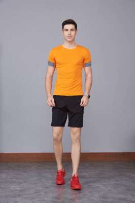 男裝新款情侶裝純色T恤 男上衣潮純棉圓領 短袖T恤 橘色